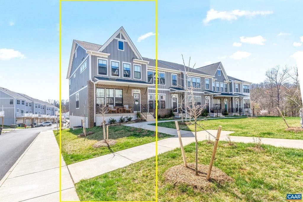 Skip the long wait to build and check out this MOVE-IN READY beautifully appointed 3-bedroom, 2.5 bath townhome. This END-UNIT home offers an abundance of natural light. Walk into an expansive living room that flows easily to the kitchen and dining area making it a great space for entertaining. The modern kitchen has been upgraded with gourmet style SS appliances, tall white cabinetry, quartz countertops with ceramic backsplash, custom colored island with extra storage and an ample pantry. Enjoy the outdoors from the large, trex deck just off the dining area or the wide covered front porch that overlooks the common area. The primary bedroom includes a walk-in closet, oversized windows, recessed lighting with a ceiling fan. The attached primary bathroom is equipped with a tile shower and flooring and a double sink vanity. Other features include LVP flooring, rec room located on the terrace level with high ceilings. The neighborhood has miles of walking/hiking trails, playgrounds and is less than a mile to 5th Street station (Wegmans, restaurants, shopping and more). 4 miles to UVA Hospital and Grounds.,Quartz Counter,White Cabinets